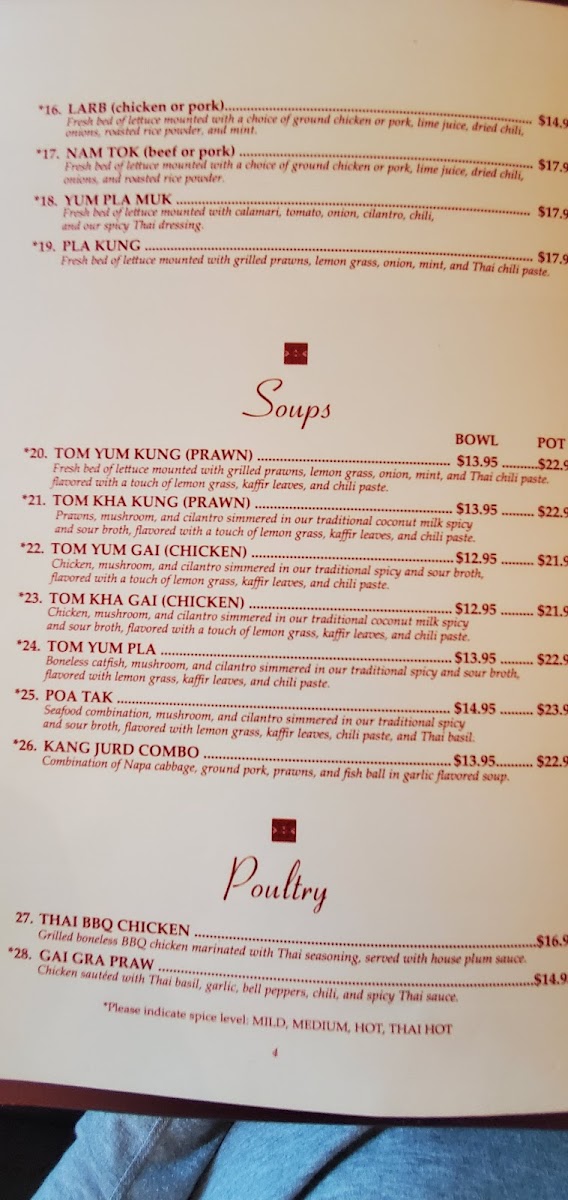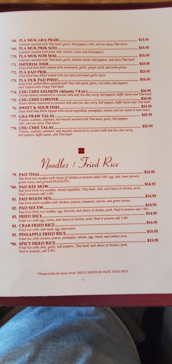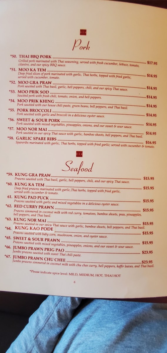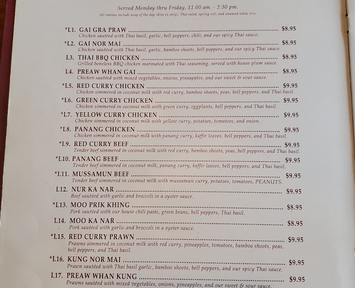 Indulge in a culinary journey with their diverse menu that features tantalizing dishes such as the Red Curry Prawn. This exquisite dish showcases plump prawns simmered in rich coconut milk and red curry, harmoniously blended with fresh vegetables including pineapples, tomatoes, and bell peppers, offering a perfect balance of sweetness and spice that keeps patrons coming back for more. For those who enjoy a touch of zest, the Moo Gra Praw presents a delightful option, where pork is sautéed with fragrant Thai basil, garlic, and chilies, bringing forth a burst of flavors with every bite.
